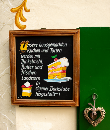 Genießen Sie Ihr Lieblingsgebäck aus unserem wechselnden Angebot mit einem schönen Tee oder Kaffee. Im Sommer im sehr beliebten Biergarten oder auf der Sonnenterrasse. An kühleren Tagen in unserer urigen und gemütlichen Gaststube. Oder nehmen Sie eine Auswahl zum Kaffeeklatsch für sich und Ihre Lieben mit nach Hause.